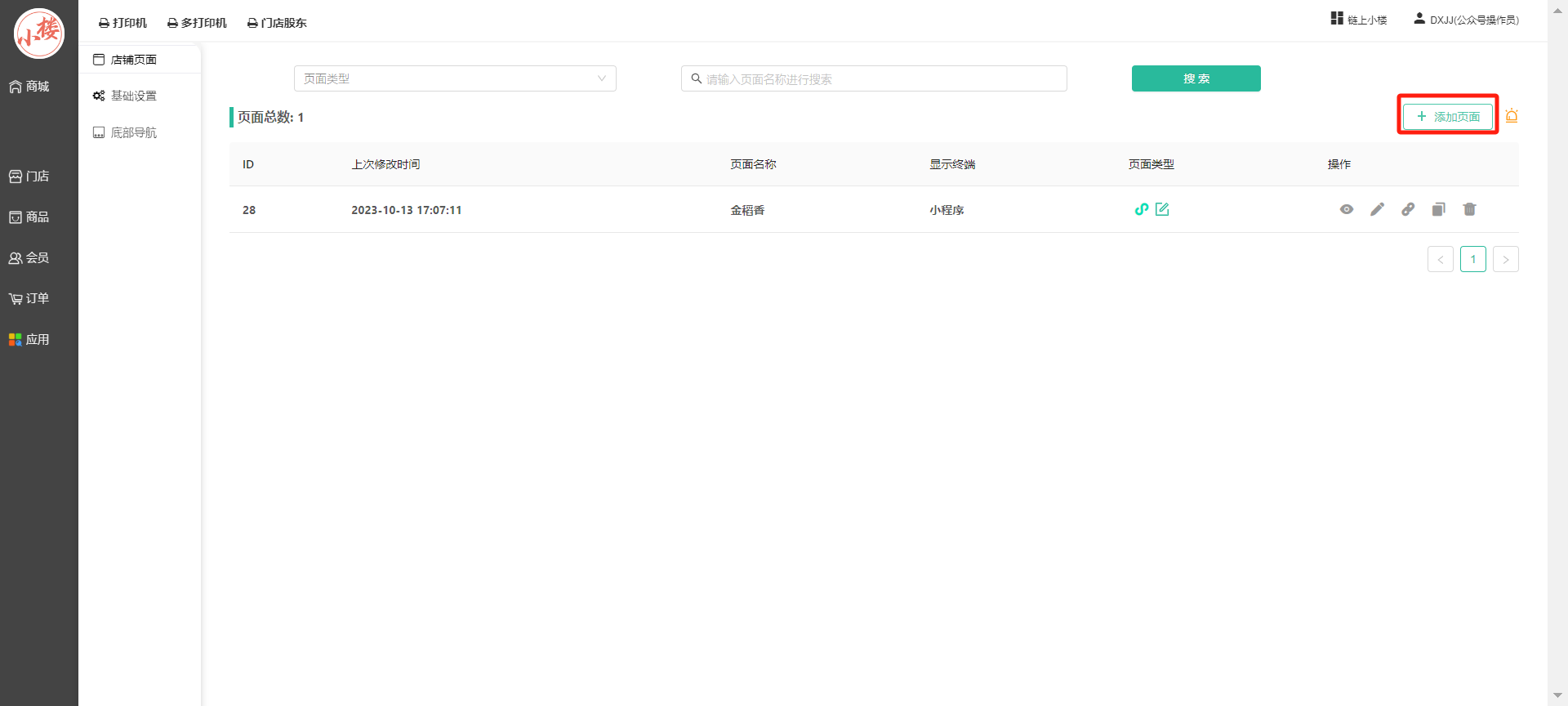 门店装修支持H5(公众号)、微信小程序使用,创建装修好页面后,记得需要勾选显示使用